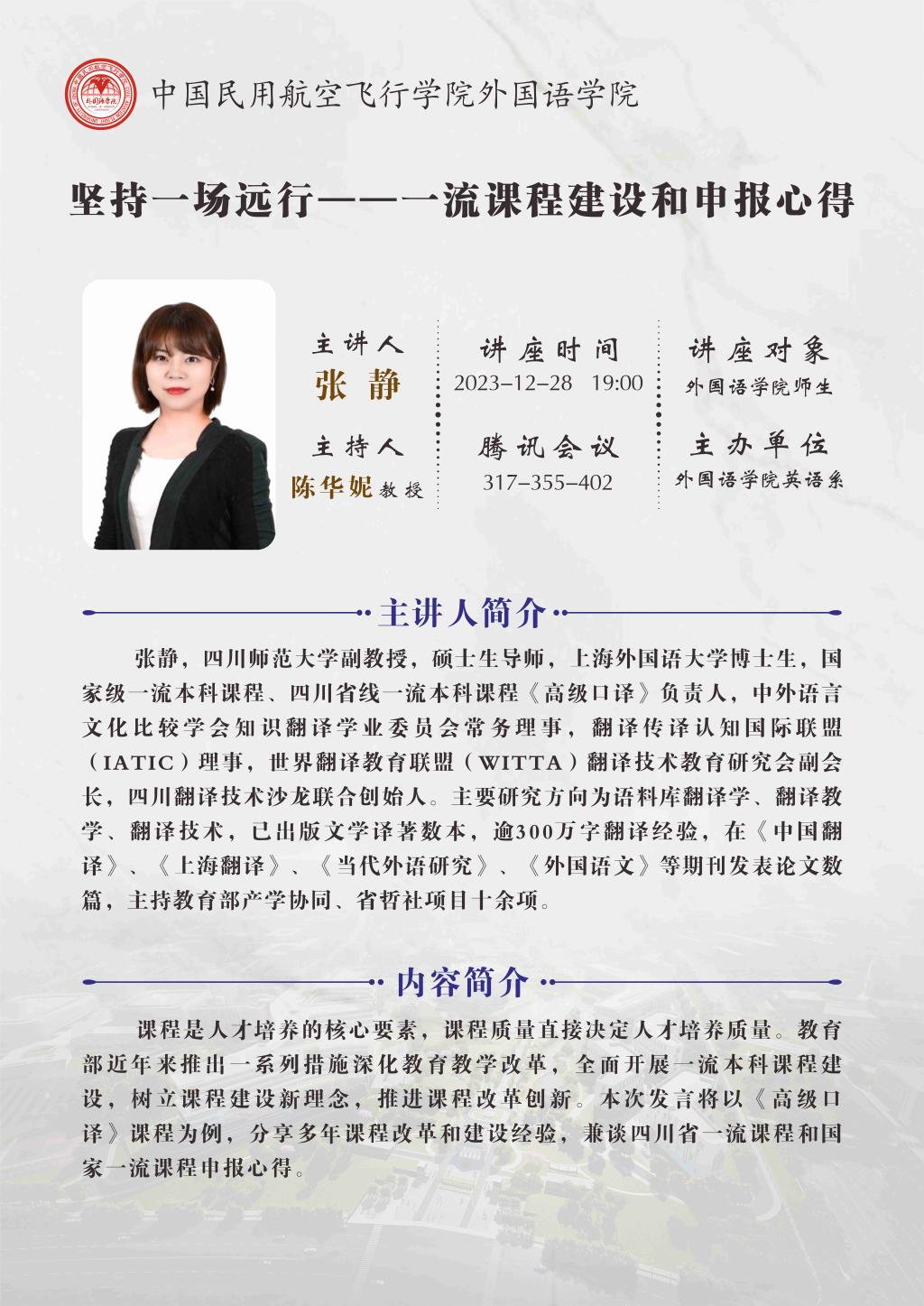 讲座通知:坚持一场远行一一一流课程建设和申报心得