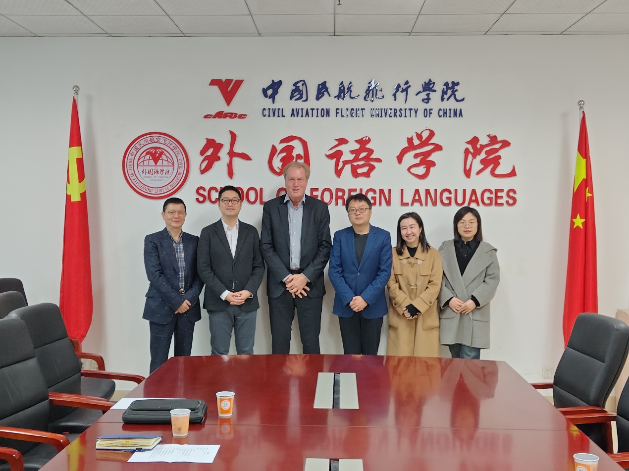 2023年11月29日上午,Speexx公司全球总裁Armin Hopp先生一行到访中国民用航空飞行学院(以下简称中飞院)kaiyun开云官方网站,与kaiyun开云官方网站肖凌院长及大学英语第二教研室的主要负责人周丹强玉、邹佳静老师就Speexx高校项目在飞行学生的推广和应用情况进行了热烈的交流。