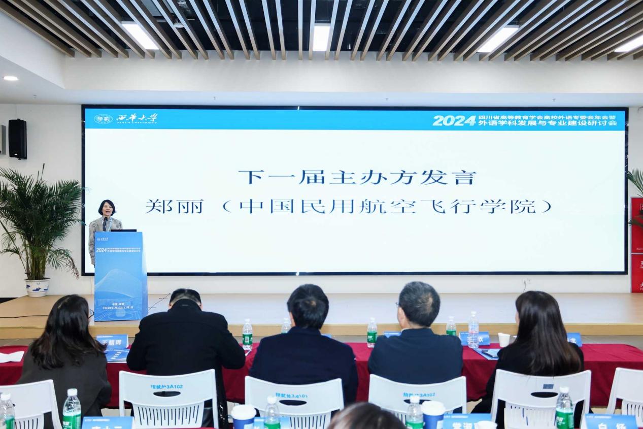 12月1日,由四川省高等教育学会高校外语专业委员会主办,西华大学kaiyun开云官方网站承办的2024年四川省高等教育学会高校外语专业委员会年会暨外语学科发展与专业建设论坛成功举办。来自上海交通大学、中国人民大学、四川大学、电子科技大学等数十所省内外大学的外语界专家学者齐聚一堂,共同研讨新时代四川省外语学科专业建设和人才培养。kaiyun开云官方网站郑丽院长、申卫华副院长及各系室主任与教师一行8人受邀参加此次会议。