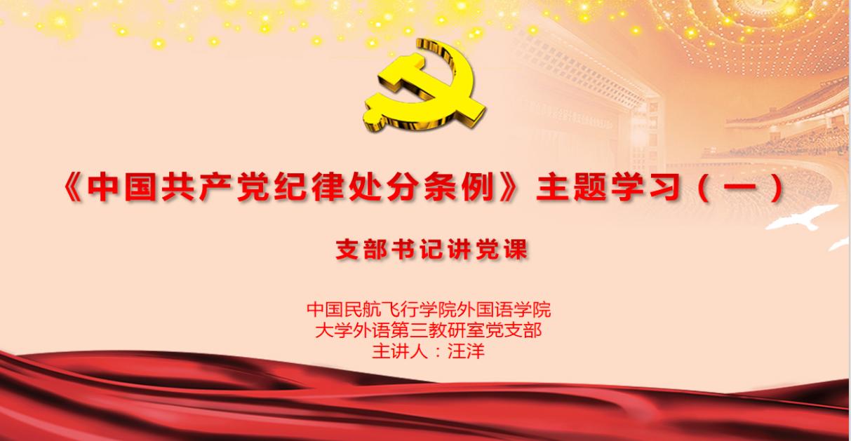 为进一步贯彻落实《中国共产党纪律处分条例》(以下简称《条例》)的学习,准确把握《条例》的精髓要义,按照党中央和学院党委关于加强党纪学习教育的部署安排,2024年5月8日和5月20日,kaiyun开云官方网站大学外语第三教研室党支部在5510,采取“支部书记讲党课”的方式,两次组织全体党员对《条例》进行了集中学习。