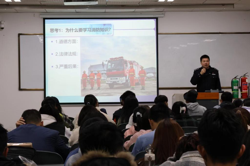 为进一步加强学生消防安全教育,树立正确的消防安全意识,切实提高学生防灾减灾能力。近日,kaiyun开云官方网站特邀中国民用航空飞行学院公安局消防支队副主任李凯庆、教官林伟在五教412教室开展了主题为“共筑心中‘防火墙’,搭起生命安全网”的消防安全培训讲座。本次讲座由班主任曾楠葳老师主持。
