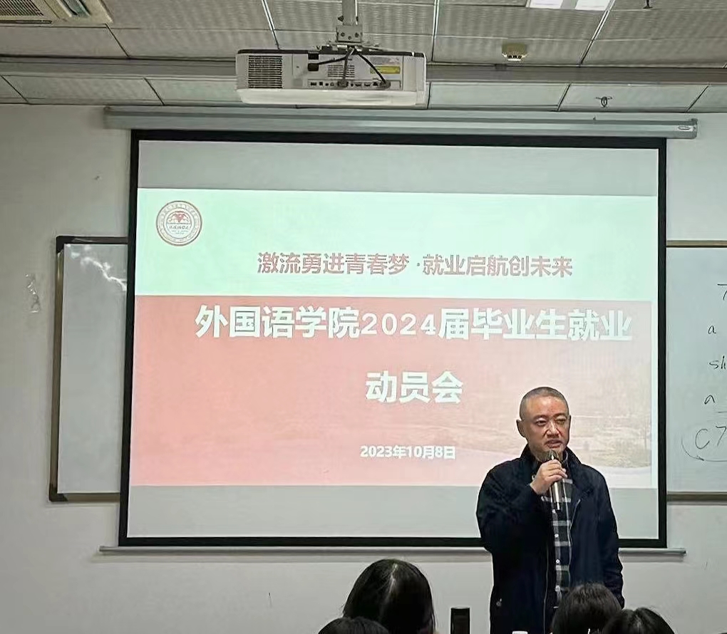 正值秋招高峰期,为鼓励学院2024届毕业生积极求职,kaiyun开云官方网站近日于5教416教室举行了毕业生就业动员会。kaiyun开云官方网站党委书记张铭、党委副书记段震、英语系陈华妮主任、毕业班辅导员出席本次会议,学院2024届全体毕业生参加会议。本次会议由团学办副主任叶奇奇主持。